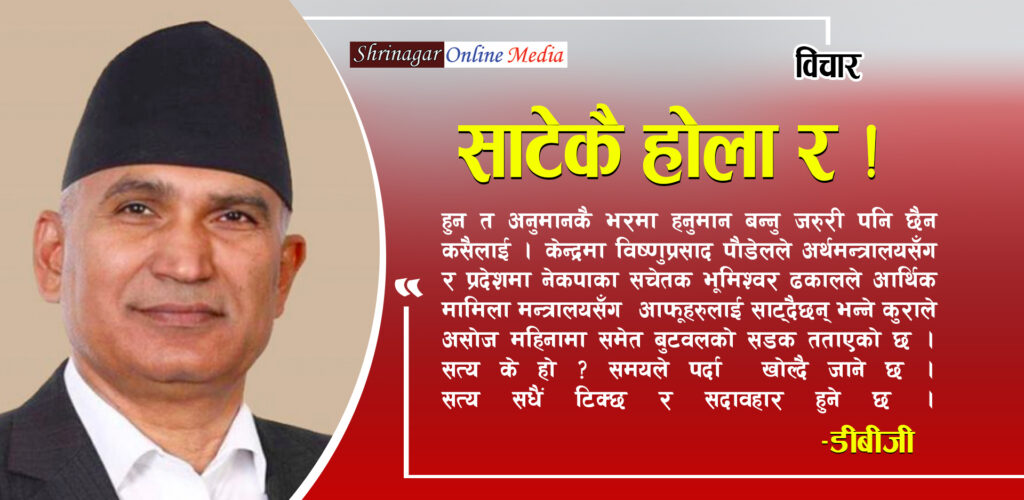 जे होस् । प्रदेश सरकारले संघीय लोकतान्त्रिक गणतन्त्रलाई आत्मसाथ गर्नेछ । संघीयता केही होइन भन्नेहरुलाई बलियो आधार र गफ गर्ने थलो दिने छैन । संघीय र स्थानीय सरकारको पुलको रुपमा काम गर्ने प्रदेश सरकार नै हो भन्ने कुराको प्रमाण आफैले जुटाउने छ । जुटको राजनीतिले समाज र राष्ट्रको विकास सम्भव छ । पार्टी र नेताको झगडाले अरु नै तगडा हुने हुन् । बेलैमा ध्यान जाओस् ।